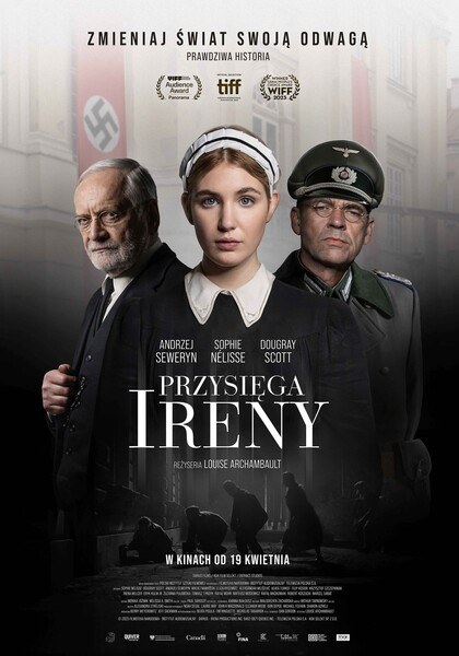 Przysięga Ireny to prawdziwa, przejmująca opowieść o zachowaniu człowieczeństwa w nieludzkich czasach II wojny światowej. Historia jest oparta na faktach z życia Ireny Gut-Opdyke, która z narażeniem życia ratowała Żydów ukrywających się po likwidacji getta. W głównych rolach zobaczymy gwiazdy światowego kina: Sophie Nelisse i Dougraya Scotta. W obsadzie polsko-kanadyjskiej koprodukcji znaleźli się również: Andrzej Seweryn, Filip Kosior, Rafał Mohr, Eliza Rycembel, Tomasz Tyndyk, Irena Melcer, Eryk Kulm Jr, Mateusz Mosiewicz, Rafał Maćkowiak, Maciej Nawrocki, Zuza Puławska, Krzysztof Szczepaniak, Aleksandar Milićević i Agata Turkot. Reżyserką obrazu jest wielokrotnie nagradzana Louise Archambault, natomiast za zdjęcia odpowiada Paul Sarossy. Scenariusz napisał Dan Gordon, który jest również autorem sztuki o Irenie Gut-Opdyke, która zdobyła serca nowojorskiej widowni offbroadwayowskiej sceny w 2008 roku. Światowa premiera filmu miała miejsce na 48. Międzynarodowym Festiwalu Filmowym w Toronto.